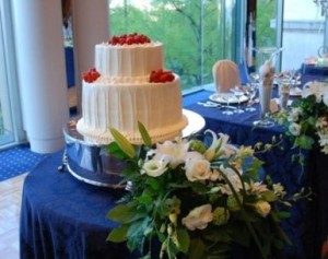 奥様の従弟結婚式のウエディングケーキ。ウエディングケーキは時代で姿形が大きく違うもの。甘党な一家なこともあって、大型ケーキ。