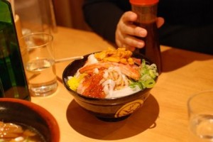 名古屋といえば、名古屋グルメ(味噌)。昼は山本屋の味噌煮込みうどんを満喫。夜は「矢場とん」だということで矢場町まで歩いてきたが、さすがに土曜日の夜では行列。仕方なく近くをブラブラ歩くと、海鮮丼の店。海鮮丼を頼み、海の幸を満喫….と行きたかったが、疲れが溜まってきた息子がグズり出し、そうは問屋が卸さない。妻は食べられず。次回、矢場とんと合わせてリベンジということで収まった。