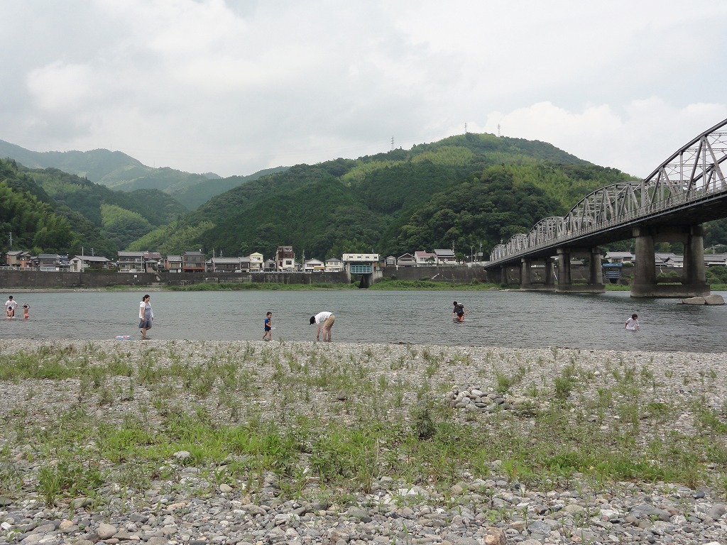 義妹夫婦がやってきて仁淀川で川遊び。川の中には魚がたくさん見える。なんとか捕まえてやろうとスーパーの100円商品コーナーで網を買い、川に頭から浸かっているが、、、捕まえられるのはヨシノボリだけ。