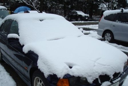 軽井沢へ雪遊び。前日の道路状況では、夏タイヤで十分だったな…と思ったが、夜半から雪が降り始め、宿泊先のチェックアウト時間にはこのありさま。サブローが雪に隠れた。雪を払ってから荷物を積み出発。