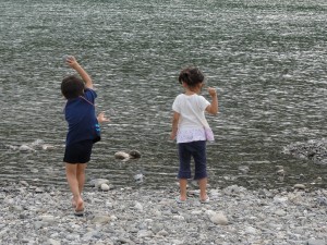 振替休日を使い、前日から来ていた藤沢の幼稚園のお友達を連れて仁淀川で川遊び。川遊びをするにはよいシーズン。風が強くてタープテントを建てるのに苦労する。