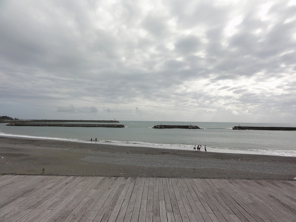 手結のお茶屋餅を買ってヤシィパークへ。道の駅側の無料駐車場に停めたかったが満杯なので、ガラガラのヤシィパーク側駐車場へ。ボードウォークを歩き、浜で遊んで帰る。前の週の月見会で夜なので波打ち際へ近寄らないよう「波にさらわれるゾ」と言い聞かせていたので、息子はあまり波打ち際へ近寄らない。脅かしすぎたな。