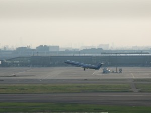 空港まで車で送ってもらって羽田から帰る。連休なので早めに羽田着だったので、飯を食べてから、屋上デッキへ上がった。写真は、保安庁のジェット機。
