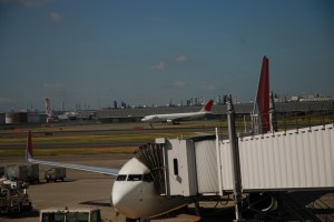 異動の内示をもらって高知へ家探し。家族3人の生活のためには、家族3人で納得して家を決める必要があると考えて、とりあえず飛び立つこととした。おともdeマイルを使えばJALの移動が格安であることもある。手前に写っている高知行きのB737-800は翼端板が印象的だが、165席のナローボディである。シート配列は 3+3なので3人の旅行には便利。