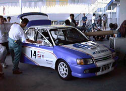 いわずとしれた、われらのEV86。 ヤングマガジンの人気マンガ「大文字D」に出てくる 「藤原とうふ店」をもじって、「藤沢とうふ店」の名前で 出場。 |