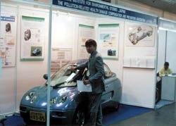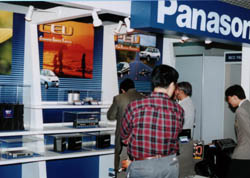 電動車輌協会主導の展示会日本ルーム。 展示会場は3個所に分かれていて、中国でひとつ、欧米でひとつ、日本でひとつ といったところです。もちろん、完全に分かれているわけではないのだけれども、 大きなブースはそのような分類。ルシオールのような小さなブースのところは 色々混ざっているけれど、それも大体同じ分類で配置されていました。 |
