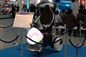 トヨタi-Swing 2005年のモーターショウで出していた、個人の移動媒体シリーズの 最新版だ。 i-Unitは4輪で自動車のイメージに近かったが、 このi-Swingになると3輪となり、しかもセグウェイ同様にジャイロの制御で2輪 走行が可能となった。 トヨタ版のセグウェイということだろう。 |