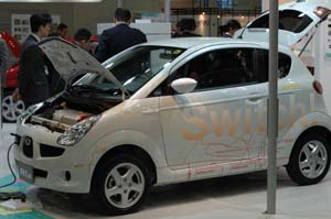 スバルのブースの向かいにある東京電力のブースは、 コンパニオン風のオネェちゃんを何人も立たせていて、 気合いの入ったブースだった。 一般の人がたくさん来る展示会ならよいのですが、 ちょっと空振りしている印象。 電気より、R1のマニュアル仕様が欲しい。 |