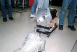 アドバンスドDC社の直流直巻モーターとトランスミッション。 モーターには既にハウジングのアダプタが取り付けられています。 |