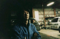 手作り教室も終わり、これは自分でもつくらねばならないと13年前のFJ1600マシンを 手に入れた彼だが、この日、明後日には鈴鹿へ電極2号を運ばなければならないという状況。 いいかげん疲れの隠せない、電極オーナー兼電極パイロット。(恐い) |