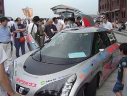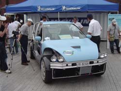 | 長女のカズコさんは お台場で静かに余生を送っていますが、 次女の エリカさんは、まだまだ「ナンバー1を目指す」現役です。 ドアを開けたら人だかり。 最高速挑戦仕様の1号車はレーシングカーなので、 興味がある人には面白いかもしれません。 | |