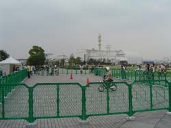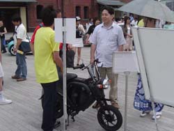 | 港側の端まで行くと、電動原付の試乗会場でした。 | |