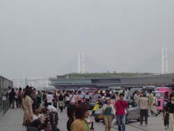 | 代々木公園は、原宿が近いこともあってデートスポットでしたが、 赤レンガ倉庫も負けじと良いデートスポットであります。 海側には 大桟橋。 その向こうには 横浜ベイブリッジ と、景色は最高!。 | |