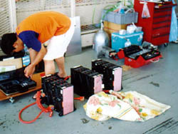 といって、全部変えられるだけの時間も電池も持ってませんから、 予選は半分しか使ってなかったりするんですけどね。 電池替えるのは一仕事です。配線も並列に戻さないといけません。 |
