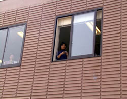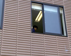 | 伊藤君がサービス中。 ヤカンなどの入るスペースは取ってあります。 | |