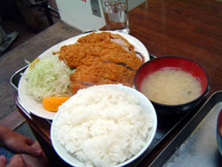 | こちらが、チキンカツでございます。 いやしかし、入り口付近で他の人が食べていた「からあげ定食」の 量のほうがすごかった....かも?! | |