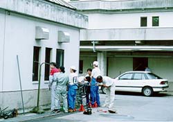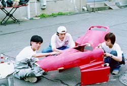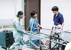 先生がSFCのオープンキャンパスで説明するのに写真が要る というので、「みんなで作業をしている図」というのを 演出してみました。 実際作業は分業されるので、全員がいっしょにというのは ありえないんですけどね。 |