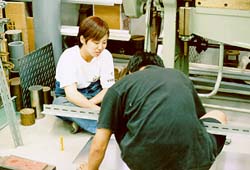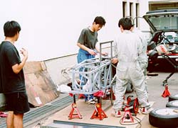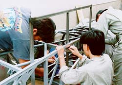 バッテリーケース部隊。 といっても、週末一度家に帰ってしまう人と入れ替えで仕事を引き継いで 作っています。 今年は、「ドライバーが死なないためのバッテリーケース」「車検の取れるバッテリーケース」 が目標です。 当たり前のことですが、昨年バージョンは危険な木箱でしたので改善が必要でした。 |