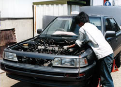 体液が流れているカムリ 「環境破壊してるぞー」とは大声で言わないでくださいね。 オートマのトランスミッションがついていましたが、 ドラシャは使うので、ミッションも分解してあるのです。 |