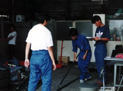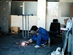 溶接中 溶接はコンバートでは大きな仕事ですが、今年の鉄工所職人は 和智君に決定。 |