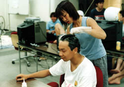有富君を改造するプロジェクトが進行中。 といっても、髪をブリーチして茶パツにしてしまう ということですが、ブリーチはブリーチでも 強力な「ハイブリーチ」。 |