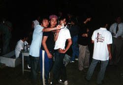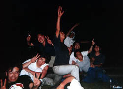 差し入れのキャンデーを食らう人々。 暑くてやっとれんのじゃ。 |