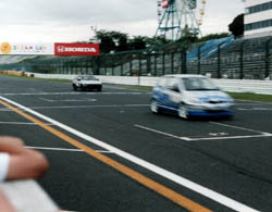 フリー走行&予選。 電気自動車クラスは2日間のレースになったので、 金曜日に予選、土曜日に決勝となります。 86も元気に予選を走っていたのですが、こちらは充電不足で 本領を発揮する前にとまってしまいました。 それにしても、前を走るビッツは速い。 |