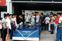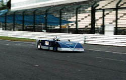 快調に走る98e オープンクラスは、出走台数が減ってしまい3台になってしまいました。 東京R&Dの「ZERO-1」を打倒することを目標に作ってきましたが、 さすがにFJ1600とF3000ではシャシーの性能が違いすぎて、予選でも 届かず。 モーターはどちらも交流。 出力がZERO-1/100kWに対して、98eは100馬力ですから、 30馬力ぐらいの差。 車重はこちらの方が軽いはずなんですが。 |