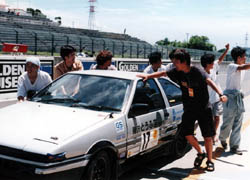 鈴鹿レースで車が絡んでリタイアは おそらく初めてじゃないでしょうか。 去年の単独スピンアウトも初めてでしょうが、 うーん、レースらしくなったといえばなったんですけど、 「どちらも豆腐屋が...」と言われると頭の痛いところ。 CR−X、「TEAM FRONT FORCEの女の子が泣いてたぞ」 とも聞き、ほんと申し訳ないっす。 |