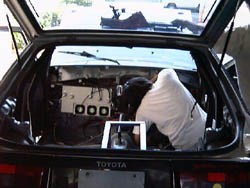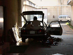 場所を少し移動したおかげで、車内が灼熱地獄になることは なくなりました。 残された作業は基本的に配線とそれに伴う加工です。 |