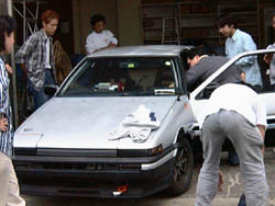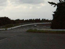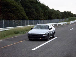 0-400m加速試験。 運転者と、測定要員の二人が乗り込み、フル加速の試験です。 車重が重要ですから、運転者と測定要員の二人の体重もパラメータに入って きます。 |
