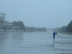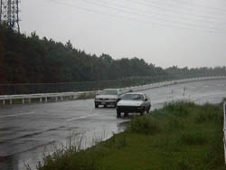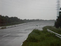 翌日は、ひどい雨でした。 それでも、予定していた試験をやらないとシミュレーションプログラム へのフィードバックができませんから、予定通りやらないといけません。 |