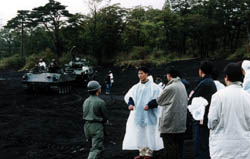 というのは前置きで、たまたま先生の同級生に陸自に勤めている人がいて、その縁で 「戦車乗せてもらおうぜ」というのが本当のところ。実際「戦車」といっても身近な乗り物 ではないのが普通の感覚の人間。それがナニモノなのか知りたい、これは是非とも乗らなきゃ ならんと思うのは「普通でない人」の「普通の反応」だろう。