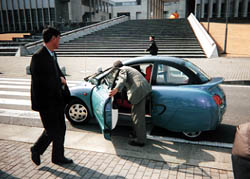 今日は雛祭り。 ということではなく、 清華大(Tsinghua Univ.)と慶應大との 提携の一環で清華大の先生方が視察に訪れた。 清華大といえば、中国では理工系の超エリート大学。 そこで大学から電気自動車のデモンストレーションを行ってください という依頼が来たのです。 |