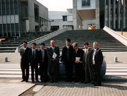 先生方が揃って記念撮影。 そういえば、斉藤学部長も来てましたね。 ちゃんと通訳の方が付いていらっしゃいましたが、 清華大の先生の中には日本語を流暢に操られる先生も いて、こちらとしては非常に安心。 でも、そんなこと言っても、私も外国語をちゃんとしゃべれるよう にならないといかんのよね。 文字どおり話にならない。 |