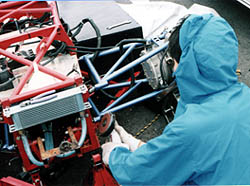 構想、製作から一年近くたっても、まだまともには走れていない98e インバーターの調整も行い、連休中にトルク司令関係の回路も問題を解決して 「約束の連休明け」ということで走らせます。 が、その前に道具の整理が最初の仕事。 |