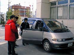 本当にバラバラの状態で、もともとのサイズが小さい分、部品を積載ローダーに 載せる訳にいかず、教授の自家用車がエスティマだったので、 細かい部品を載せるために借りて、トラックとエスティマの2台学生6人体制での 「旅」になりました。 |