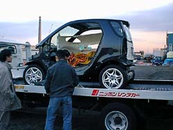 もらったスマートはバラバラだったので、学生は完全な形 をしているものを見るのは初めて。 参考に写真に収める。 でも、この車で高速を走るのは辛そうです。 なんといっても、600ccですからね。 |