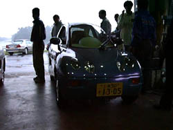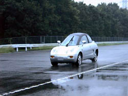雨の中での制動試験。 最後に運転させてもらいましたが、スラロームでスピンこきました。 いやぁ、楽しいクルマっすね。 広いテストコースならスピンしても怖くないので、ジムカーナの楽しさを 覗き見た気分。先生は顔が引きつっていたらしいが... |
