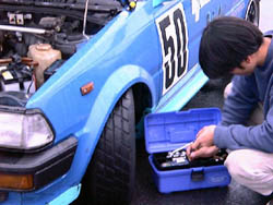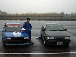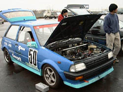 この車、以前に出てきたスターレットと色が違いますね。 というのも、訳あって違うボディーなのです。 |