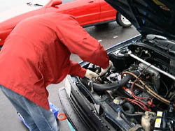 途中で帰ってきてエア調整。 レースはこういう下仕事がたくさんあって、しかも重要なことなので 大変です。 |