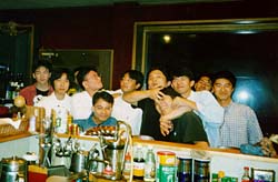 まだ4人しか集まっていないので、とりあえず4人で乾杯。 おぃおぃ、10名分の予約でこのまま来なかったら幾らに なるんだよ...という心配をしておりました。 |