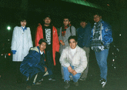 SSS恒例の卒業生追い出し長距離ツーリング それはなにかといえば、とりあえず卒業式が終ったらその足で、 遠くへ車で出かけ、そしてそのまま帰ってくる...(帰ってくるが重要) 去年は、新潟は寺泊、魚のアメ横でしたが、さて、今年の目的地はといえば、 なんと「神戸」。 この写真は、出発地「横浜」みなとみらいでの集合写真。 見送りにOBの方々がいらっしゃいました。 |