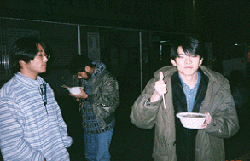 使用前 飯を食い、お出掛け前の面々。 もう、この日は眠かったなぁ。 なにせ前日、学校に泊まってましたから。 といっても、徹夜あけのさみしいバレンタインデーなので、こういう時は 行くっきゃないでしょ....と思ったが、事故が恐いので助手席へ。 結局最後まで寝てたように思います。 |