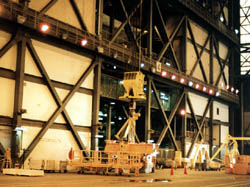 VABには70個のLifting deviceというのですから、 クレーンの類が設置されていることになります。 その中でも、この250トンクレーンは、もちろん一番の力持ち。 シャトルのオービターは空の状態で76〜79トンですから、もちろん シャトルに対しては随分オーバースペックではあります。 |