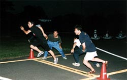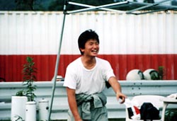 「ヨーイドン」でスタート。 って、走ってるじゃないですか。 3番手のドライバーがコースを一周してドライバーにタッチしてスタートという 「サタデナイト式」スタートです。 なんか一人フライングのように見えるが、気のせいか? |