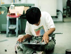 インバータ(コントローラ)を載せます。 ルシオール用インバータですが、回生ブレーキのコントローラなんかも ついていて、意外と大きいし重いのです。 |