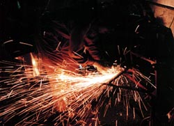 ちょっと一息、花火、いや、火花鑑賞です。 |