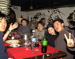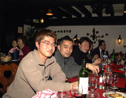 | 他のお客さんもいますが、完全に慶応Nightにしてしまった 感のある清水研。 楽しい晩餐会でした。 | |